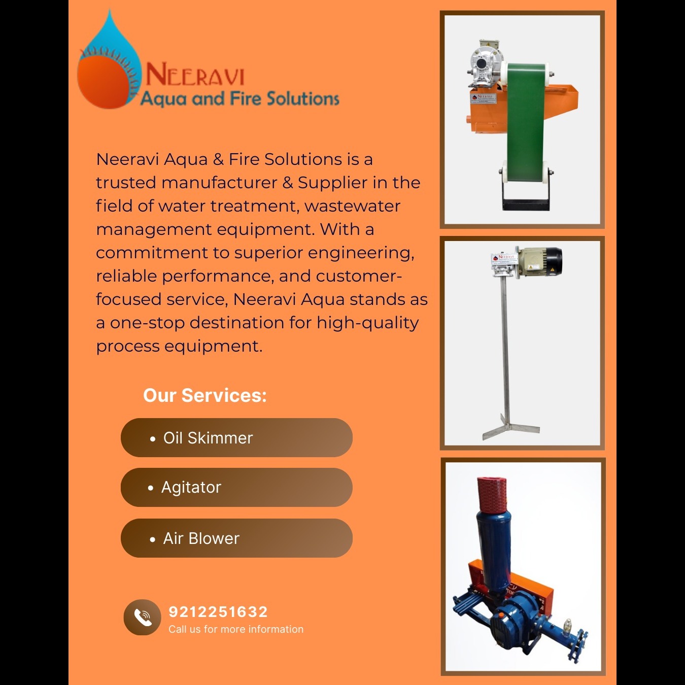 Neeravi Aqua & Fire Solutions is a Delhi-based Indian engineering company specializing in water/wastewater treatment (diffusers, media, RO, etc.), fire protection systems, and industrial equipment.